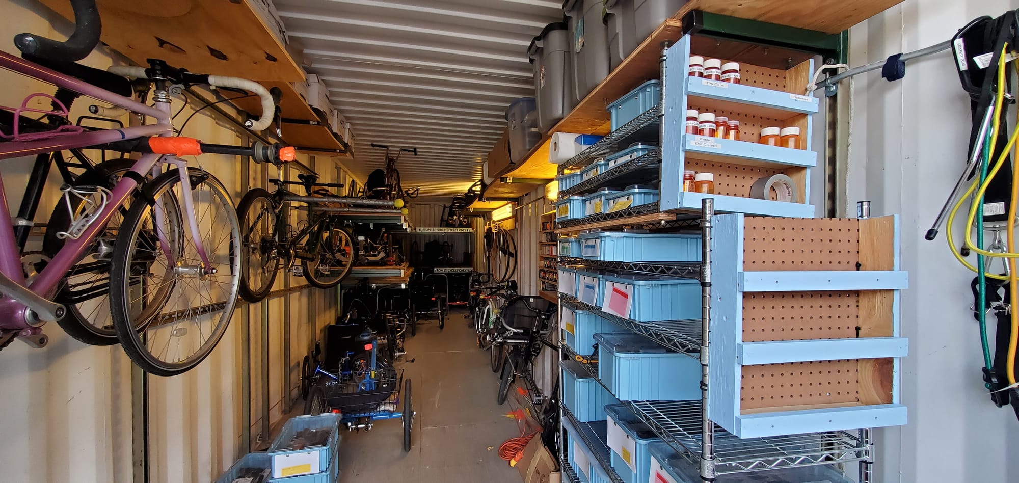 I’ve ridden down MLK Drive a million times without ever noticing the nondescript shed. I was there on a recent Saturday to meet the always-friendly Bernadette, who was there as usual to open its door. There, she revealed the smorgasbord of bikes - tandems, hand-cycles, tadpoles, deltas, super short bikes, recumbent bikes, and any adaptation imaginable. One by one, we wheeled them out to display in the parking lot, and then we waited.