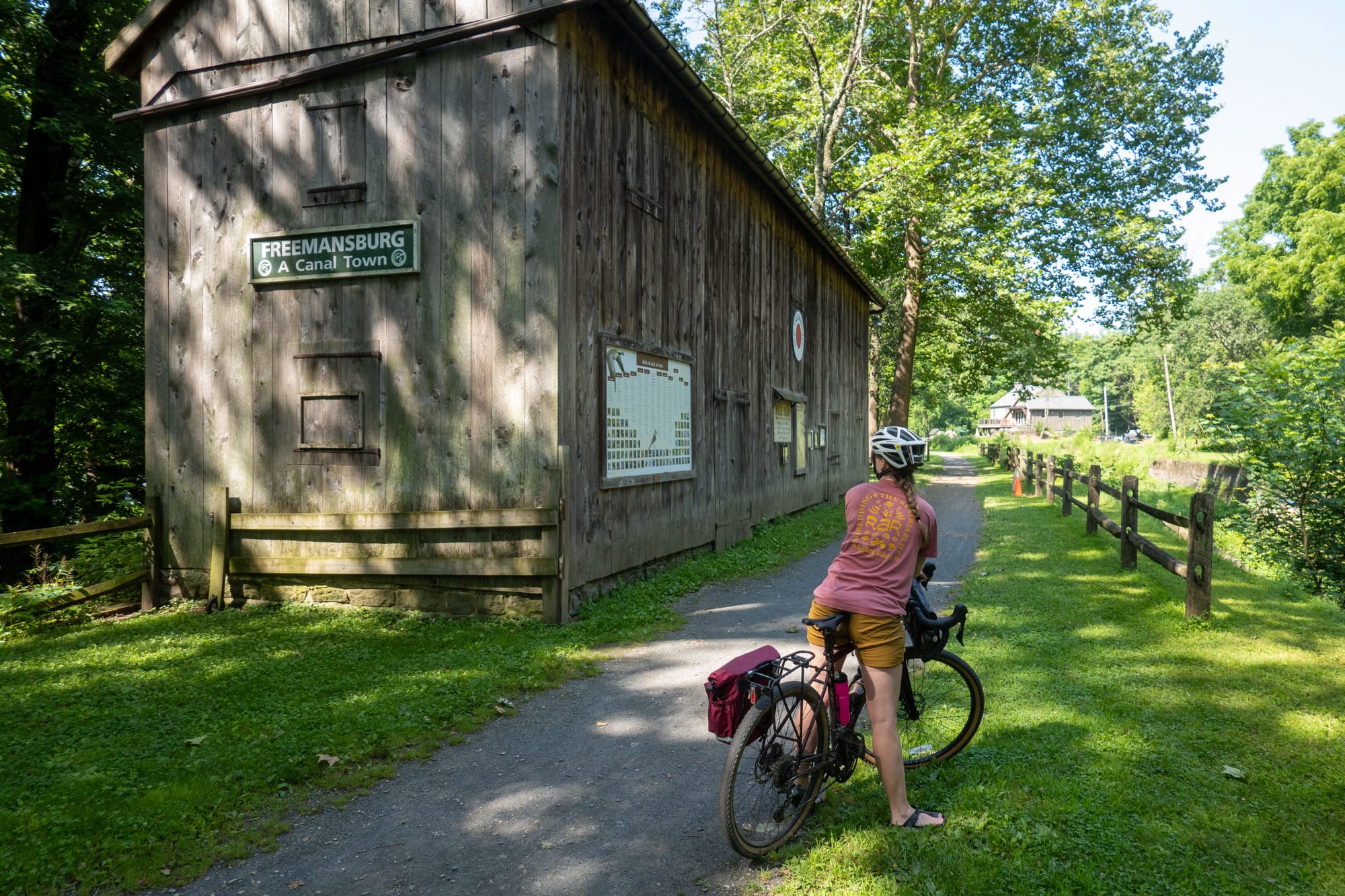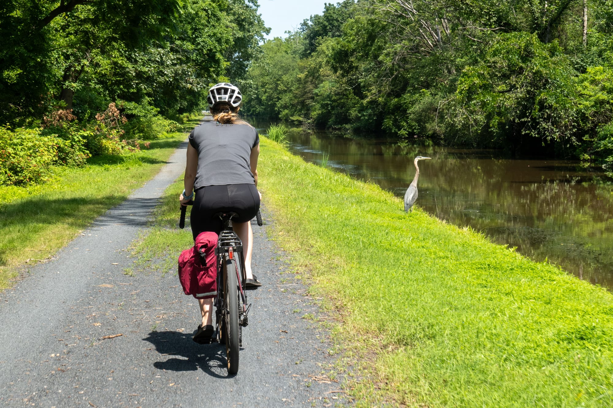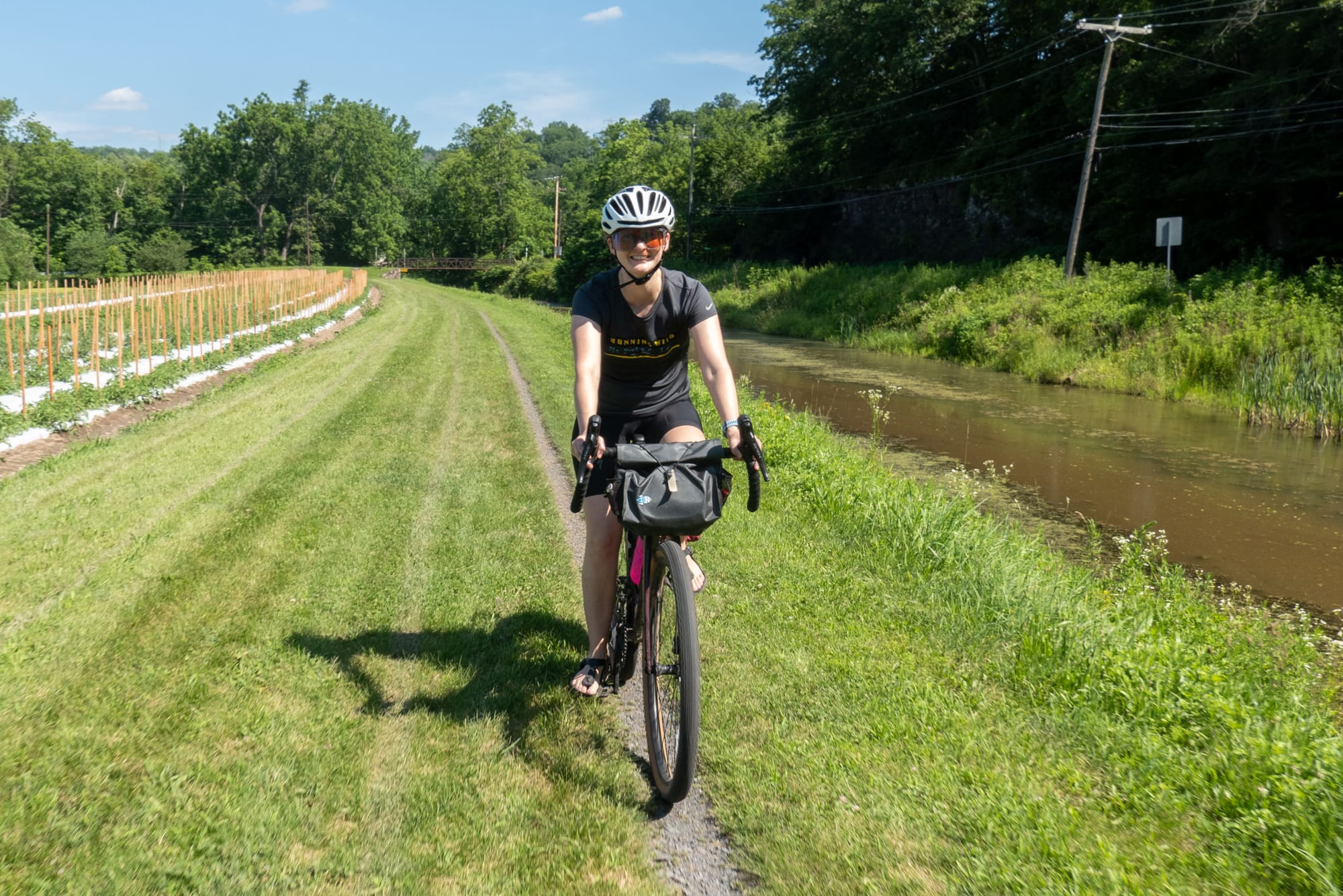 The D&R is shaped like the letter V. The segment we would be riding on northwest from Trenton was designed as a feeder, taking in water from upriver on the Delaware to fill up the entire 70-mile canal. The trail is mostly unpaved, often double track, finished with a finely crushed gravel surface. Along the way, your senses are tickled by the scent of summer blooms, the sight of teetering turtles, and the wonder of rare birds. Small towns intervene almost hourly, boasting densely gridded streets that are studded with Victorian architecture. There's always a chance to stop for a coffee, a treat, or to chase a passing butterfly.