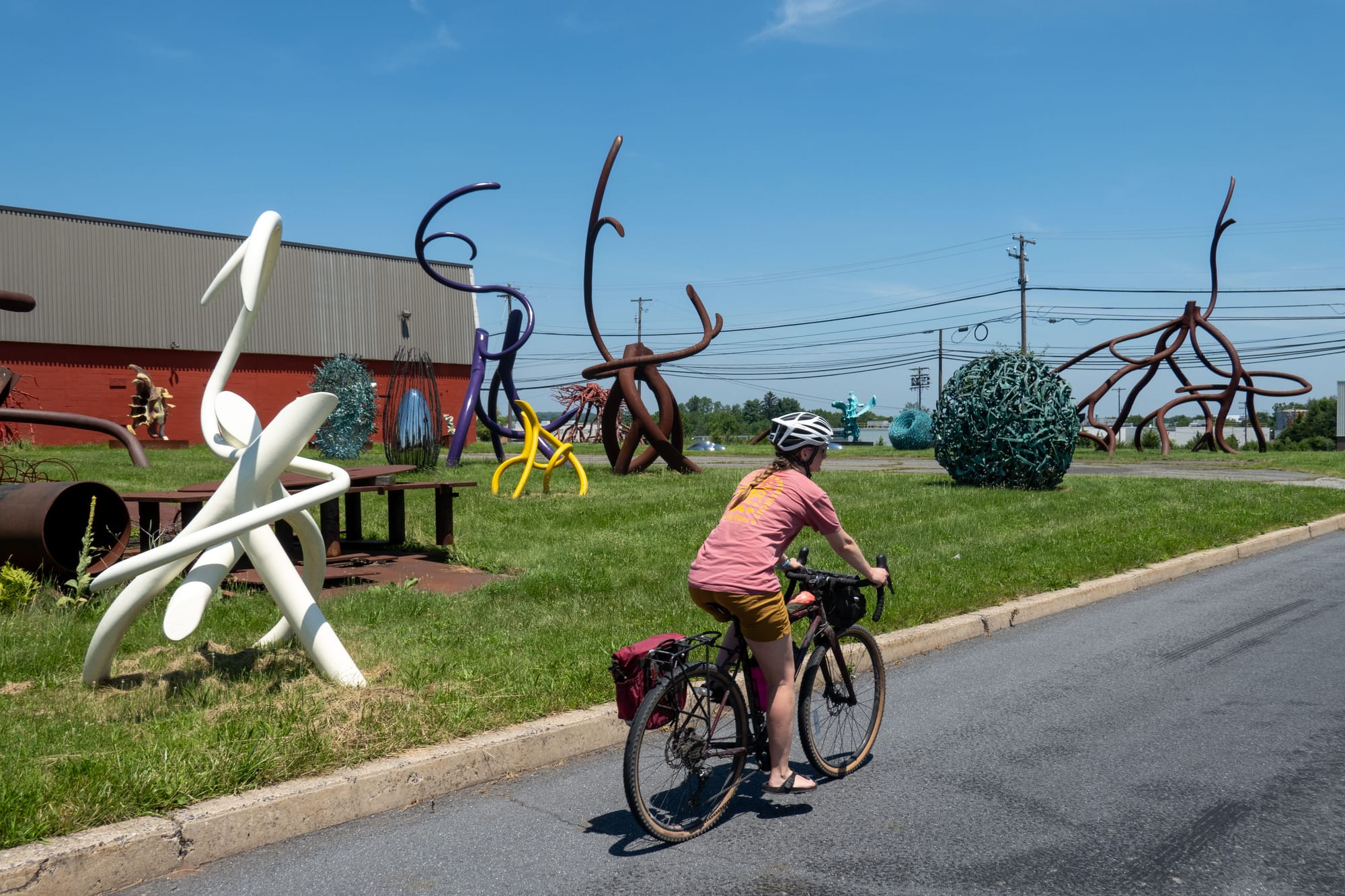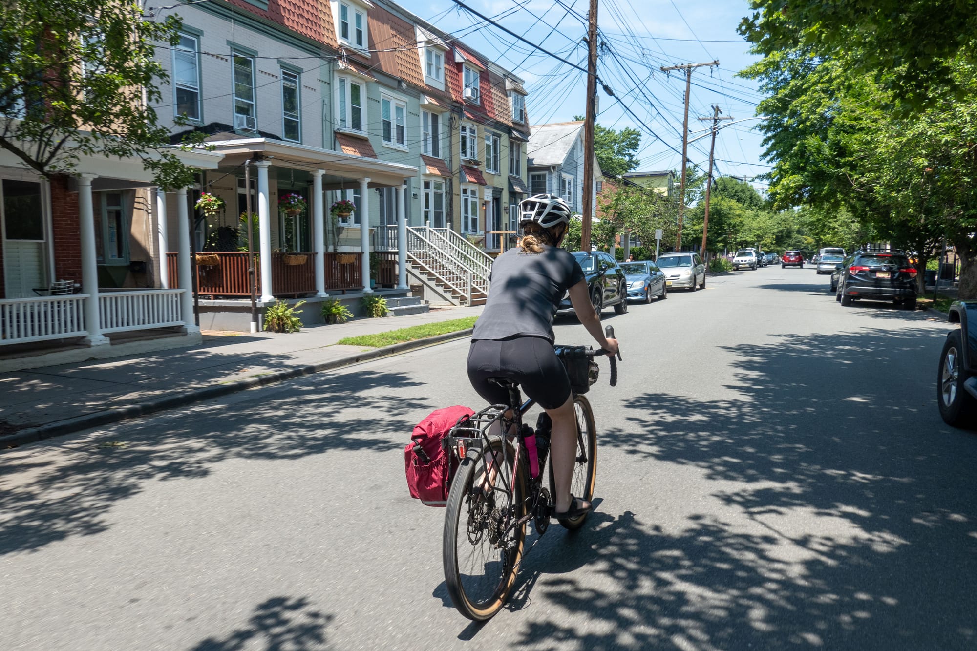 The Delaware Canal Trail meanders alongside its namesake river for the remaining 14 miles to Easton. I cursed and complained as my mood succumbed to the added resistance and slower pace of riding a loaded bike for dozens of miles on gravel. My sour mood flipped as we rounded a final corner, exuberant under the skyline of Easton at the confluence of the Lehigh and Delaware Rivers. After refreshing in our room, we enjoyed a walk to the Downtown Historic District which is a handsome setting for dinner and libations.