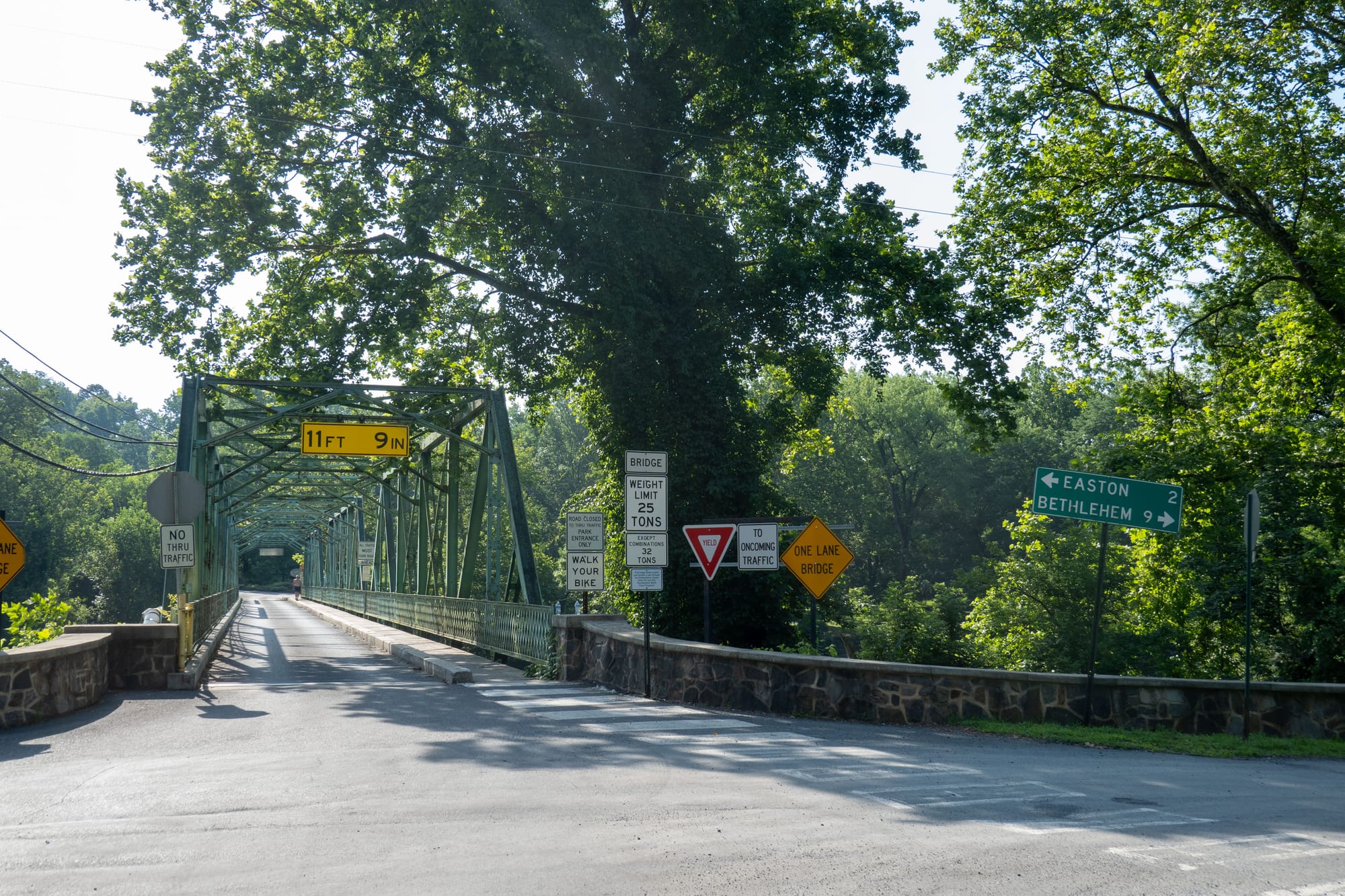 1) Detouring a Delaware Canal closure on River Road. 2) Easton over the Lehigh River. 3) Northampton Street Bridge, built 1896, spans the Delaware River to connect PA & NJ.