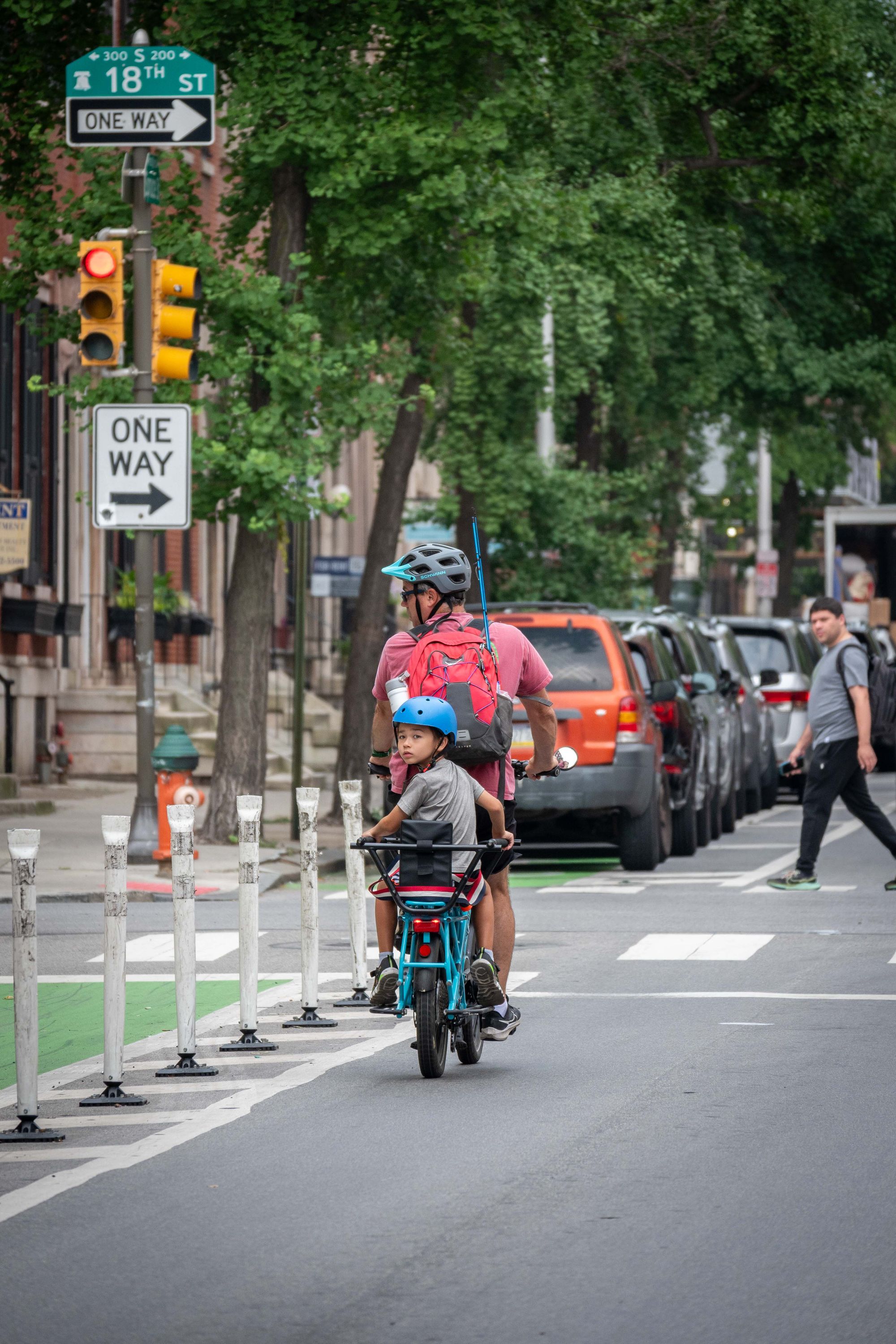 One of the organization's long term goals is a physical barrier on Spruce and Pine Streets that would make the bike lane safe enough for children to ride alone in (there is nothing unusual about kids on bikes). Philly Bike Action! is aware of recently increased bike lane parking enforcement but posits that conflict is built into the design of roadways and that sound roadway design can eliminate conflict and the need for enforcement.