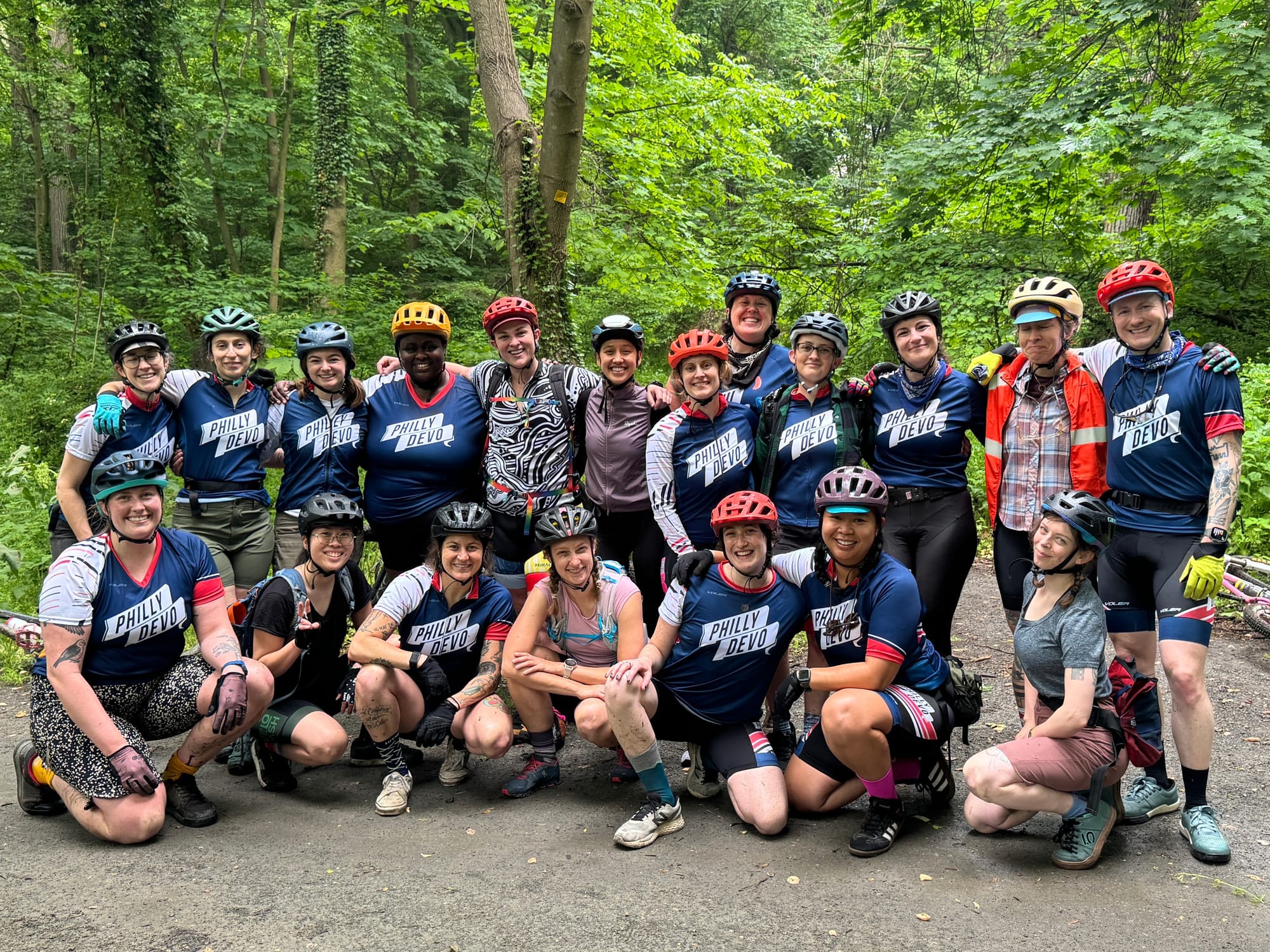 Philly Devo is a community for cyclists of marginalized genders including trans men, trans women, cis women, and non-binary riders. Through our rider development programs in road, mountain, and gravel biking, Philly Devo is committed to empowering underrepresented cyclists by creating an accessible and welcoming introduction to cycling as a sport. Philly Devo aims to create more racial and gender diversity in the Philadelphia cycling scene and diversify ridership at races & bike events in the region by supporting an emerging base of riders through peer coaching, skills instruction and community building. We serve riders who do not see themselves well represented in mainstream cycling spaces and are seeking a welcoming, fun and supportive community where they feel empowered to push themselves to try new and challenging things on the bike.