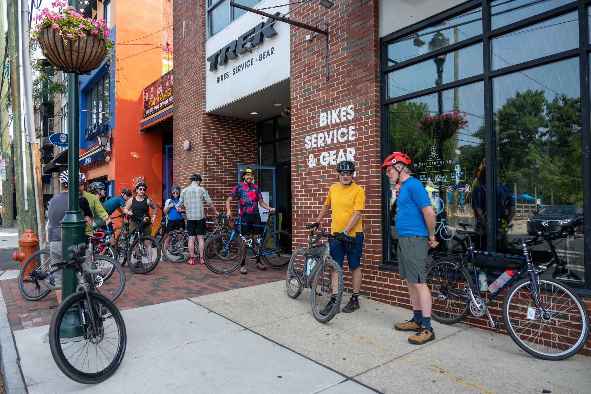 While there are some tougher parts of this ride, it is strictly social and geared towards all abilities. We dismount our bikes at Valley Green and refill bottles, take pics, and swap jokes. This ride is all about fun and everyone is loving it. After a few more miles of sweeping singletrack, the ride comes to a close back at Trek where refreshments await.