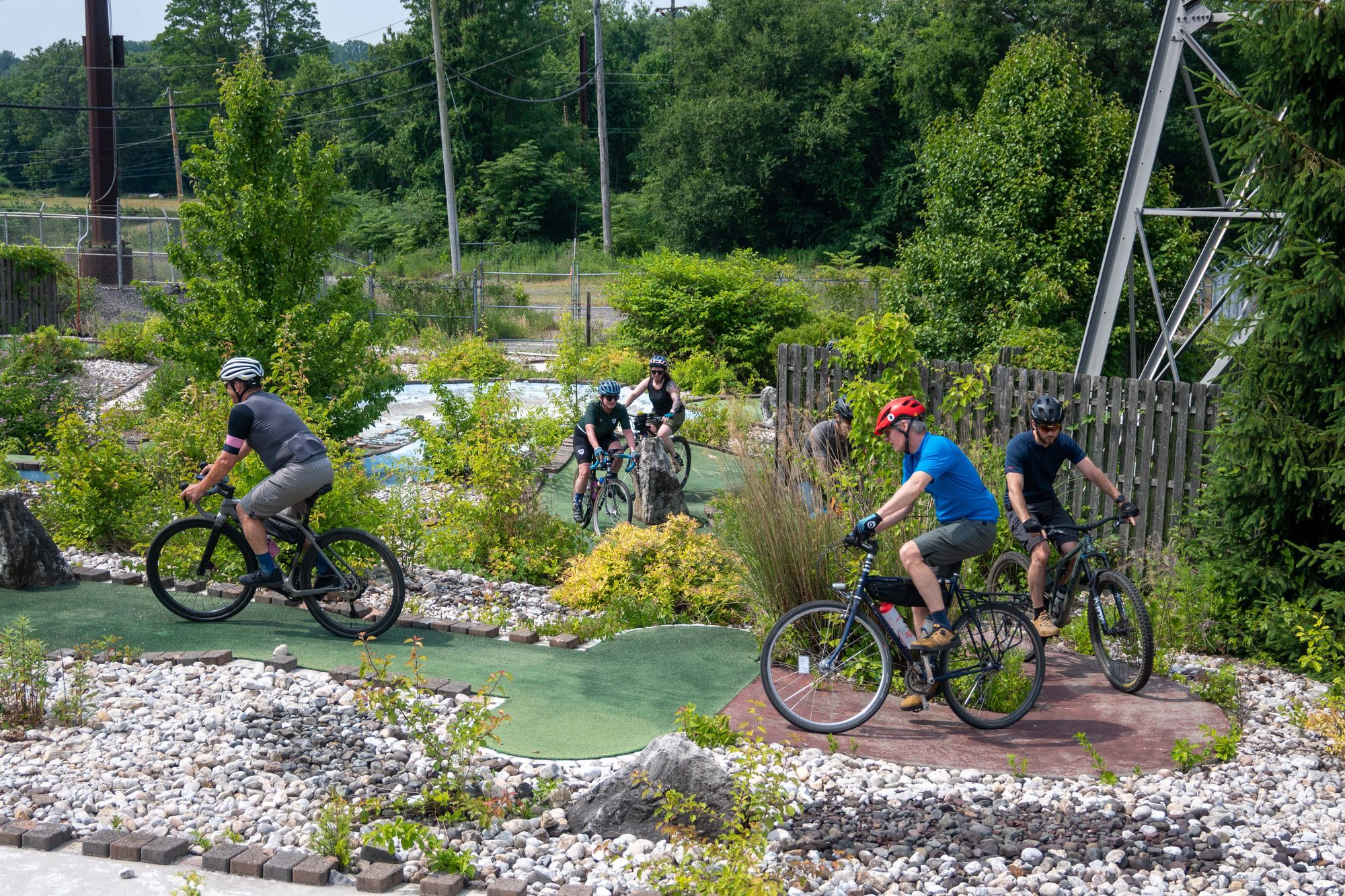 After a quick 180 degree turn and a short climb off the SRT, we followed a wide gravel path and to an abandoned mini golf course you've passed 1,000 times and maybe never knew existed. Old obstacles and new debris draw smiles and amazement to anyone slinking this serpentine slalom.
