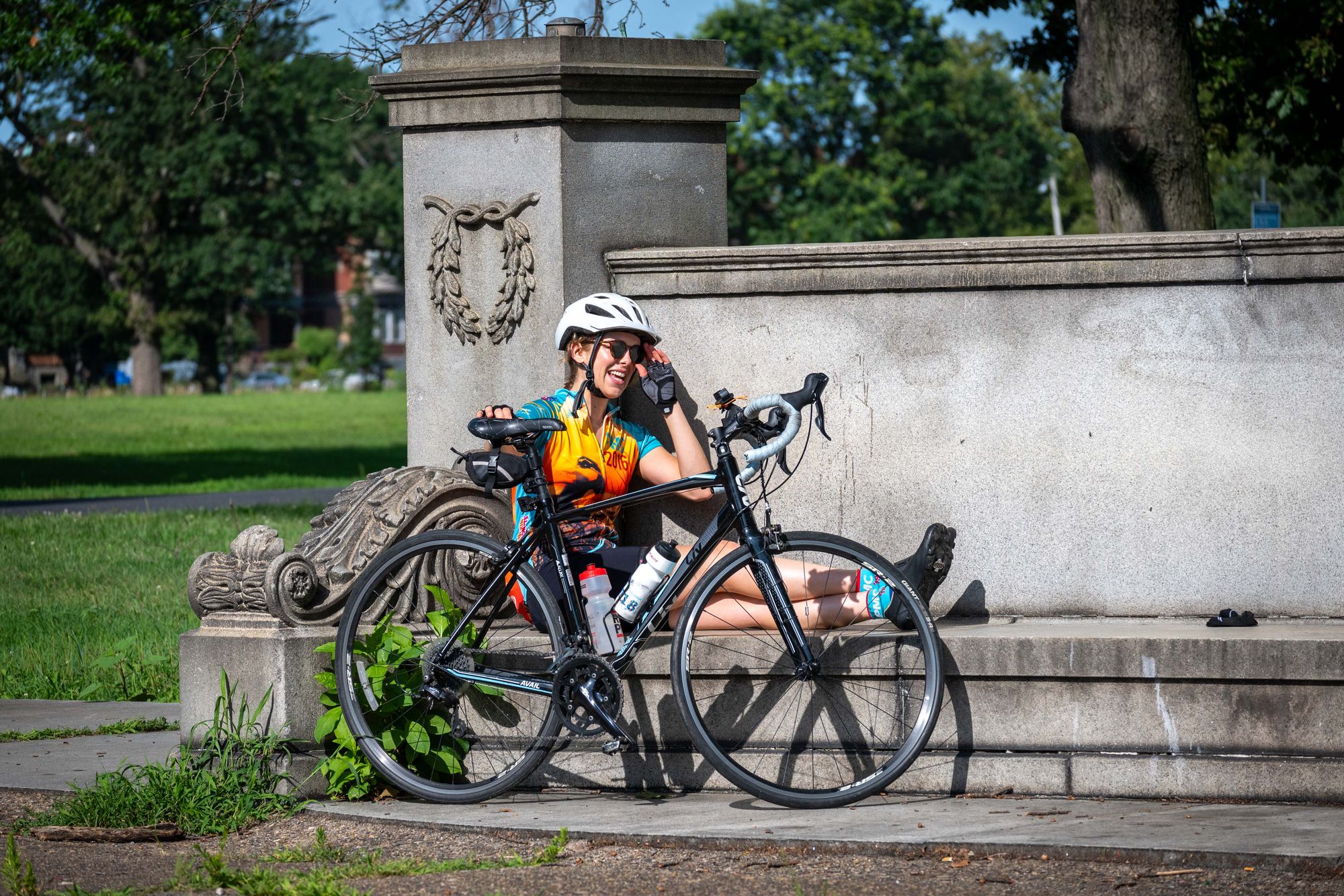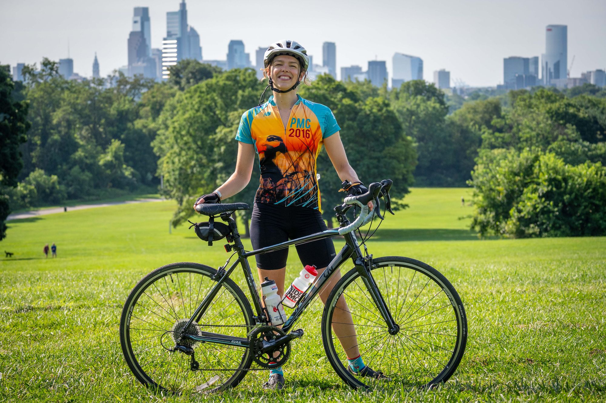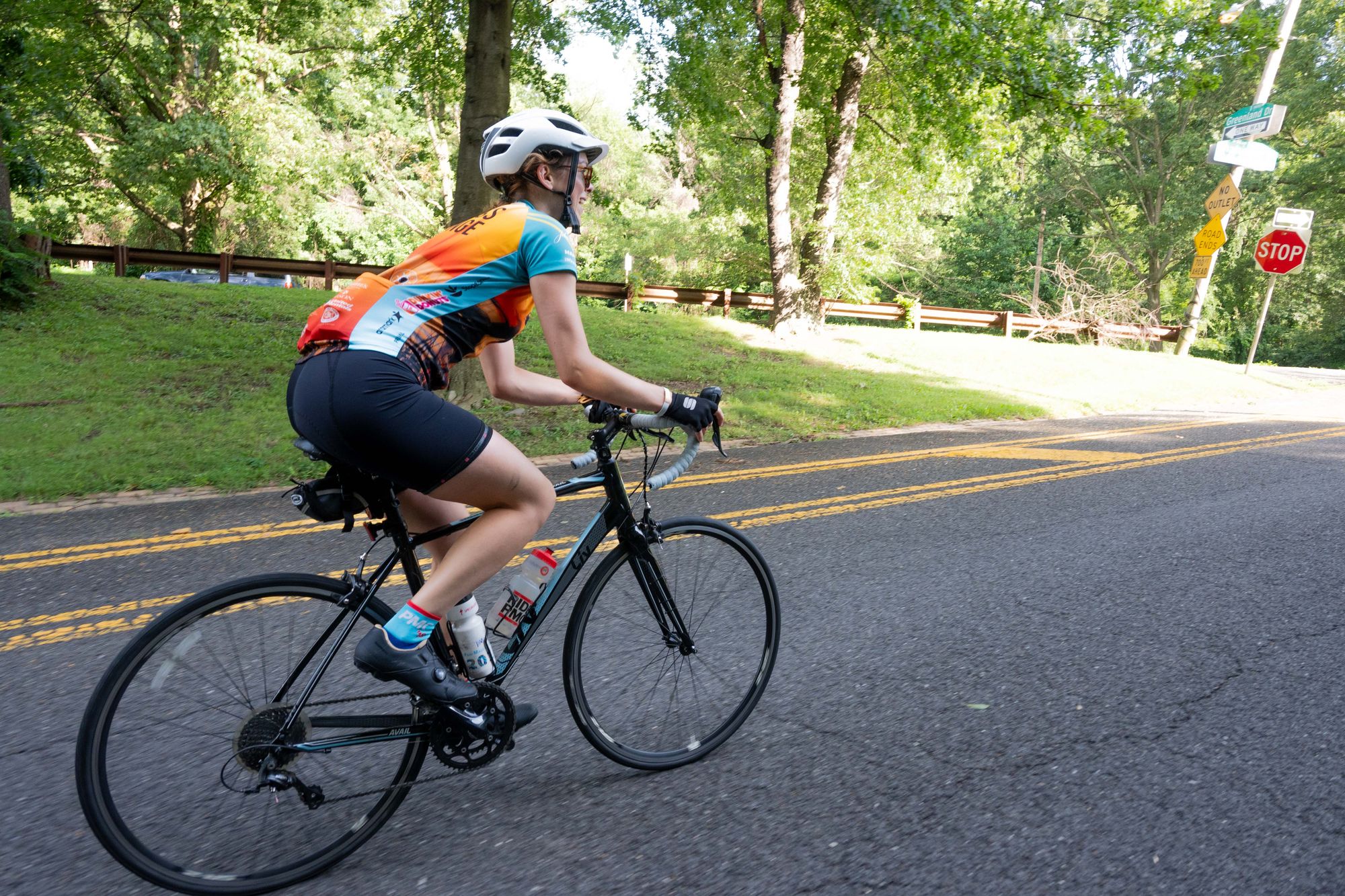 Melissa's bike is a Liv Avail that has served her faithfully over the past ten years since her first PMC. It's been on all kinds of rides, including a training ride early this season where she conquered challenging terrain and deep sand in the Pine Barrens of Wharton State Forest on skinny 700x25c tires (she doesn't necessarily recommend trying that). More recently, she completed her first century, a solo trip to New Hope and back featuring thunderstorms and generous strangers who offered water from their cars or fresh towels to clean up with from their rural farmsteads.