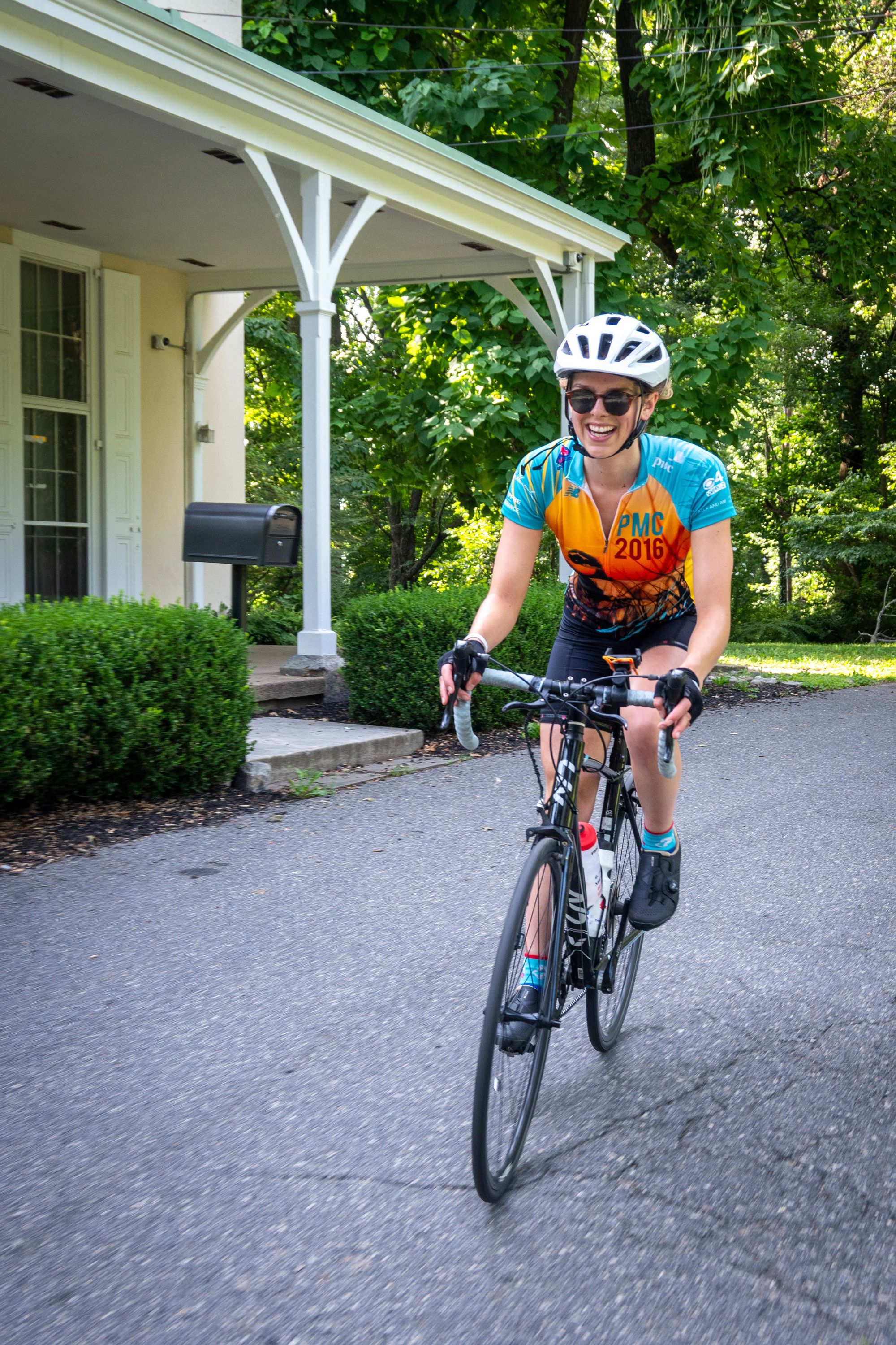 Pedaling in the cool morning air on winding park roads near historic Rockland Mansion, Melissa described growing up in Westborough, MA and how her grandma's death from cancer led to her first PMC in 2013. While studying in Philadelphia, she completed an internship at Dana-Farber and was inspired by the skill and compassion offered by nurses and doctors who helped people navigate cancer treatment. After school, Melissa stayed in Philadelphia where she still works in community healthcare.