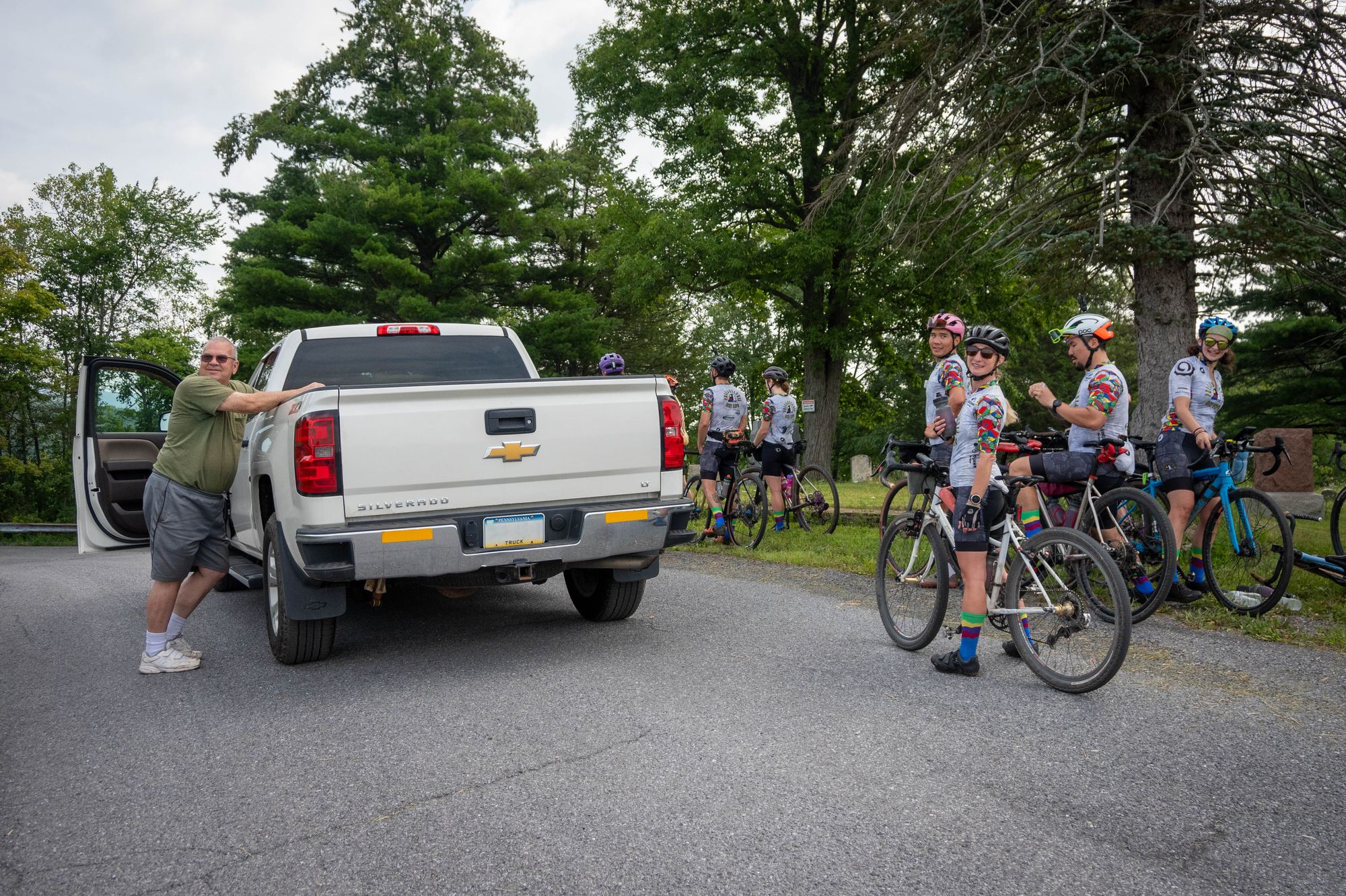 At the midway point, we toured Nittany Mountain Works' solar-powered factory, where they sustainably produce bike bags and climbing crash pads from USA-sourced materials. NMW is flipping the prevailing production paradigm by prioritizing the well-being of workers and the environment while locally manufacturing exceptionally high quality products at attractive prices. We filled our tummies with snacks and stuffed some extras into our pockets to power the trip back to base.