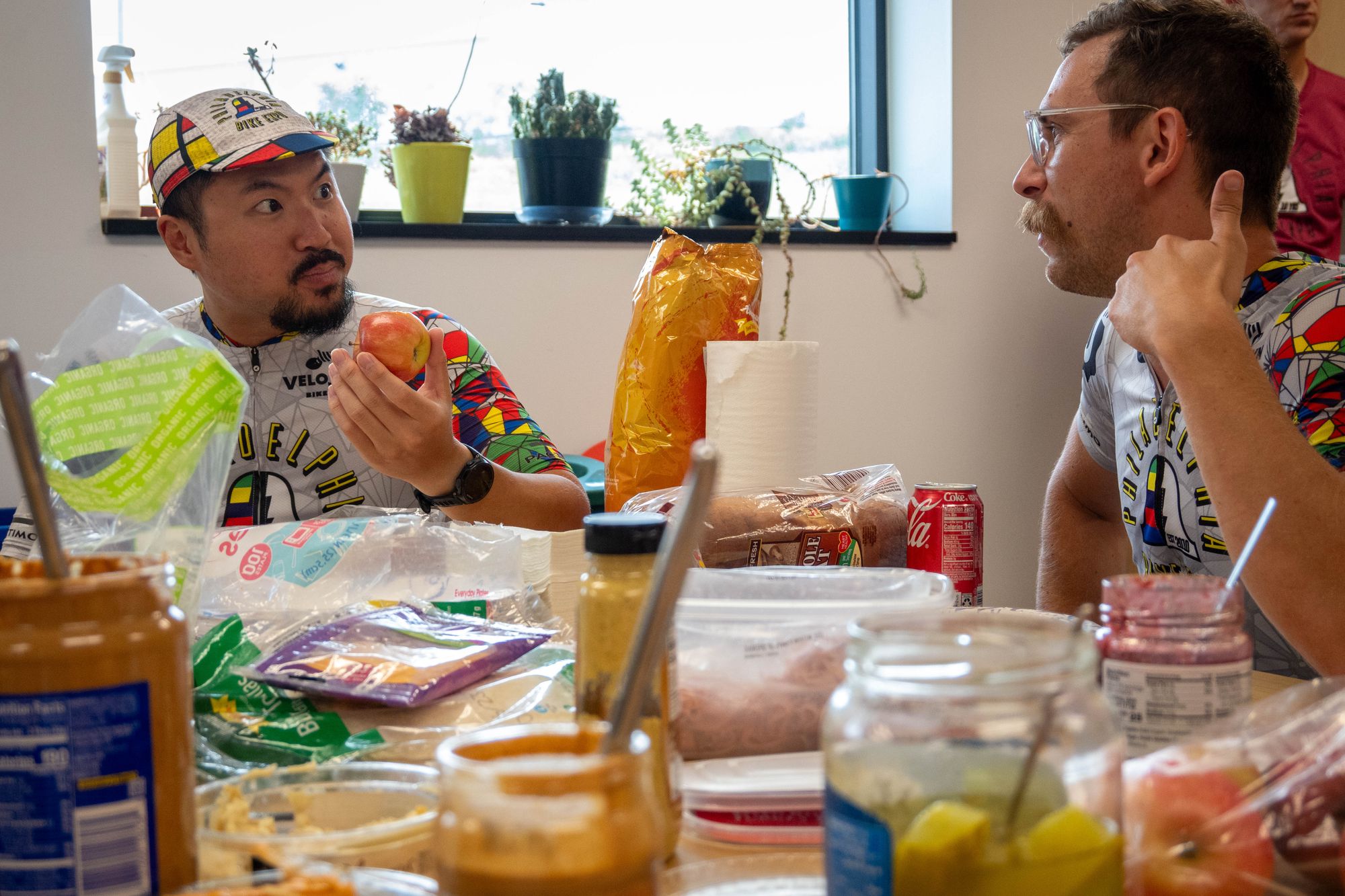 Shark gloves, countless calories, and shop talk reinvigorate tired riders.