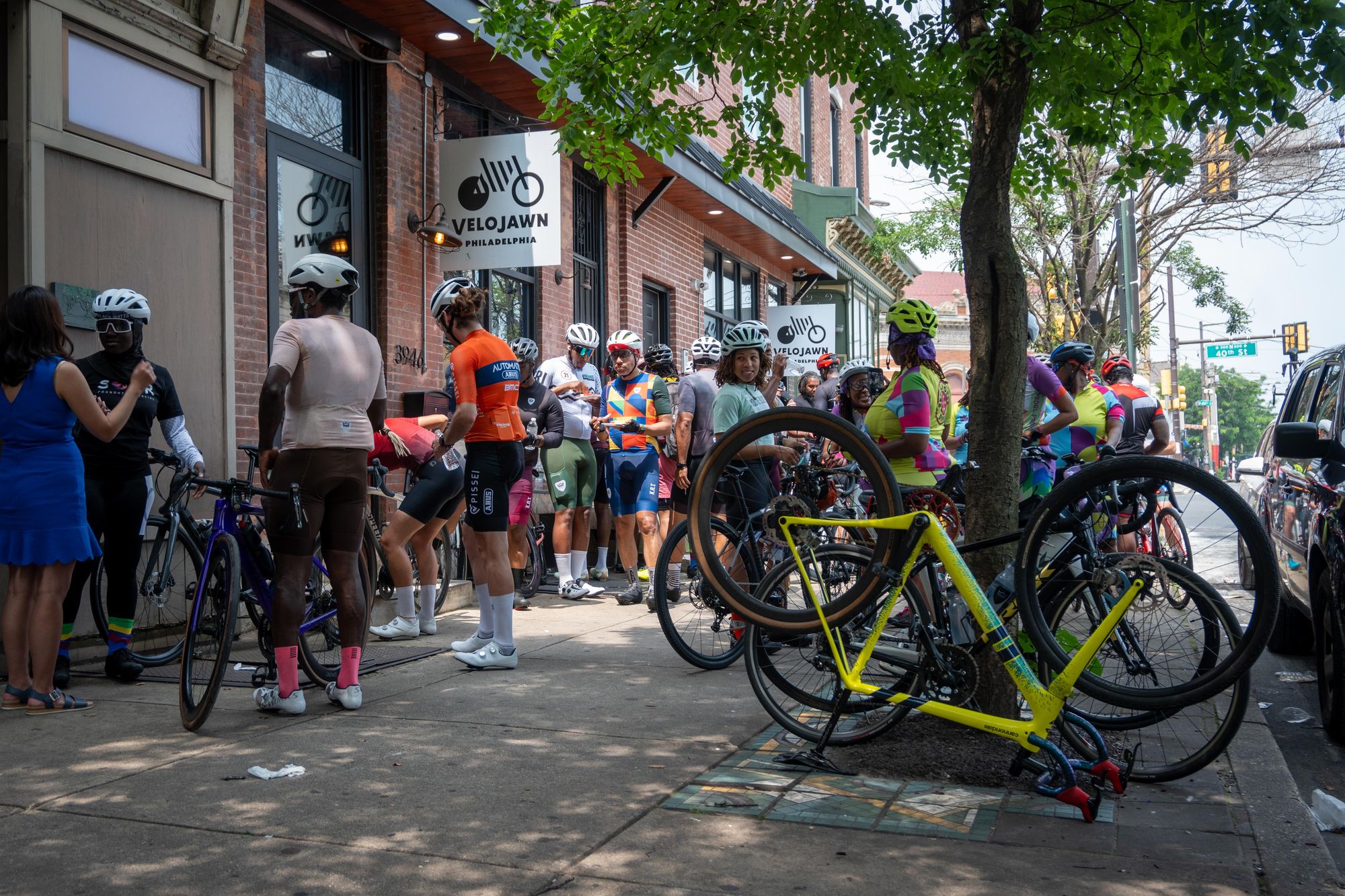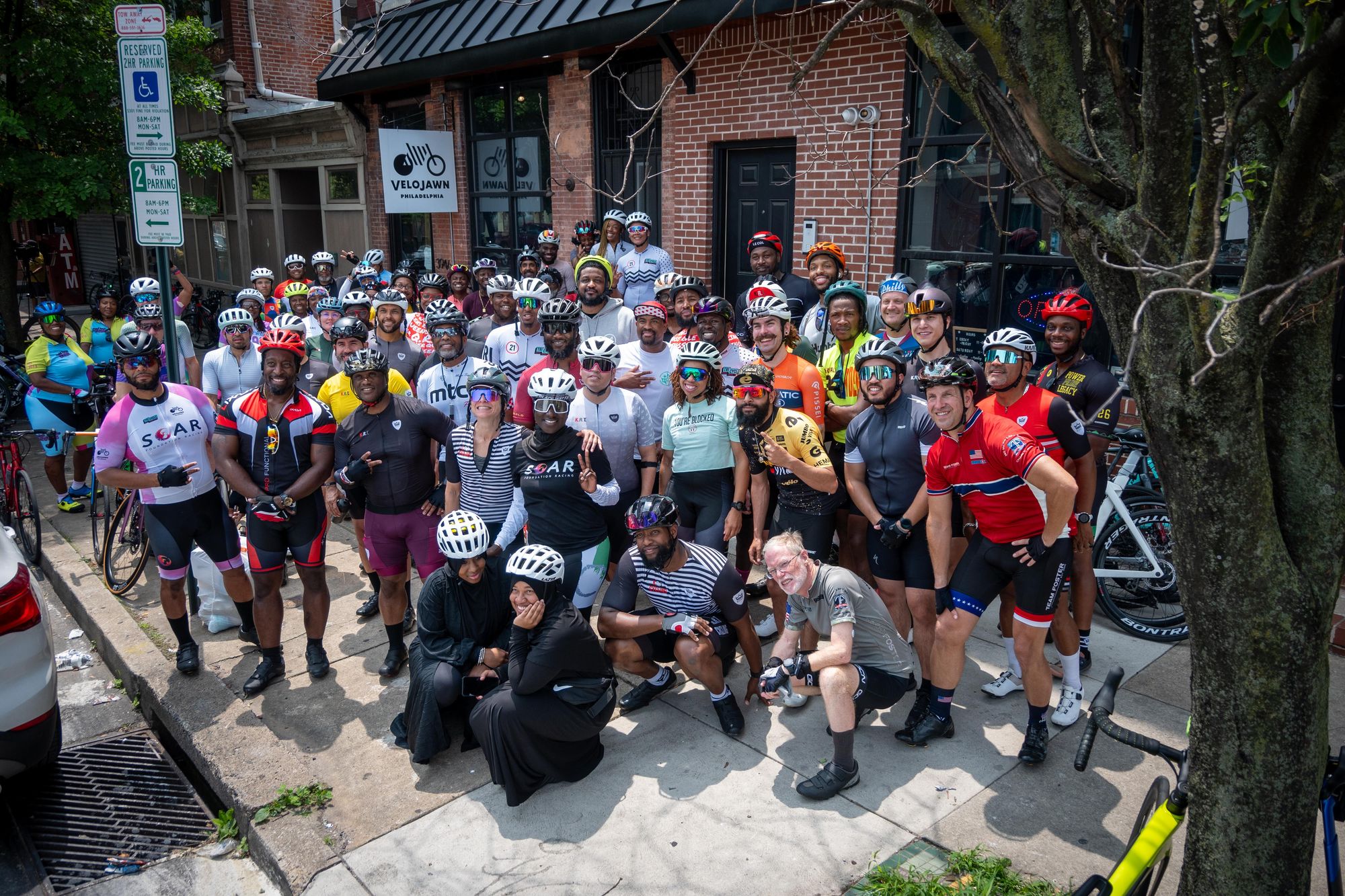 Members of multiple cycling clubs gathering at Velojawn in honor of Siddeeq.