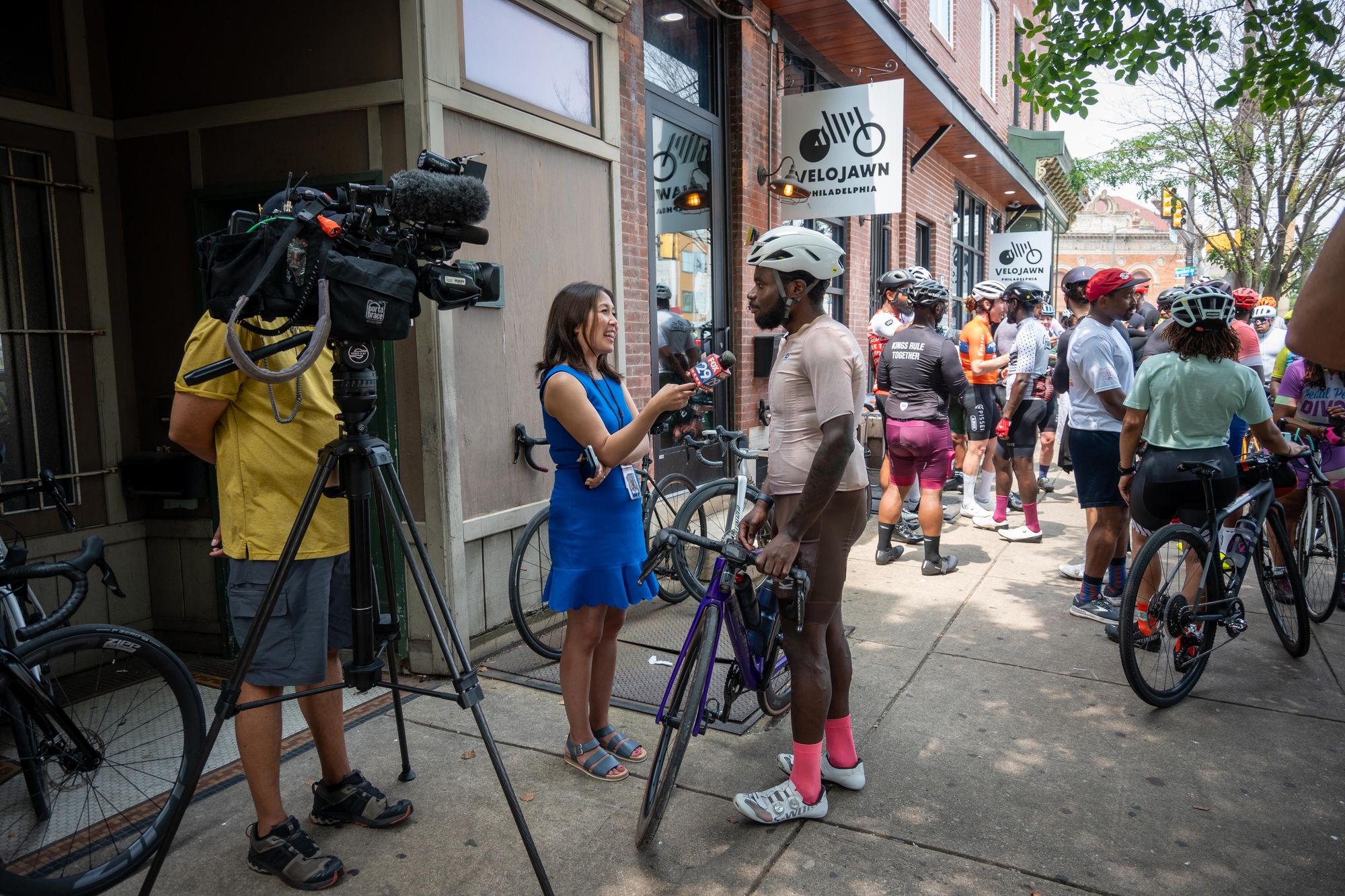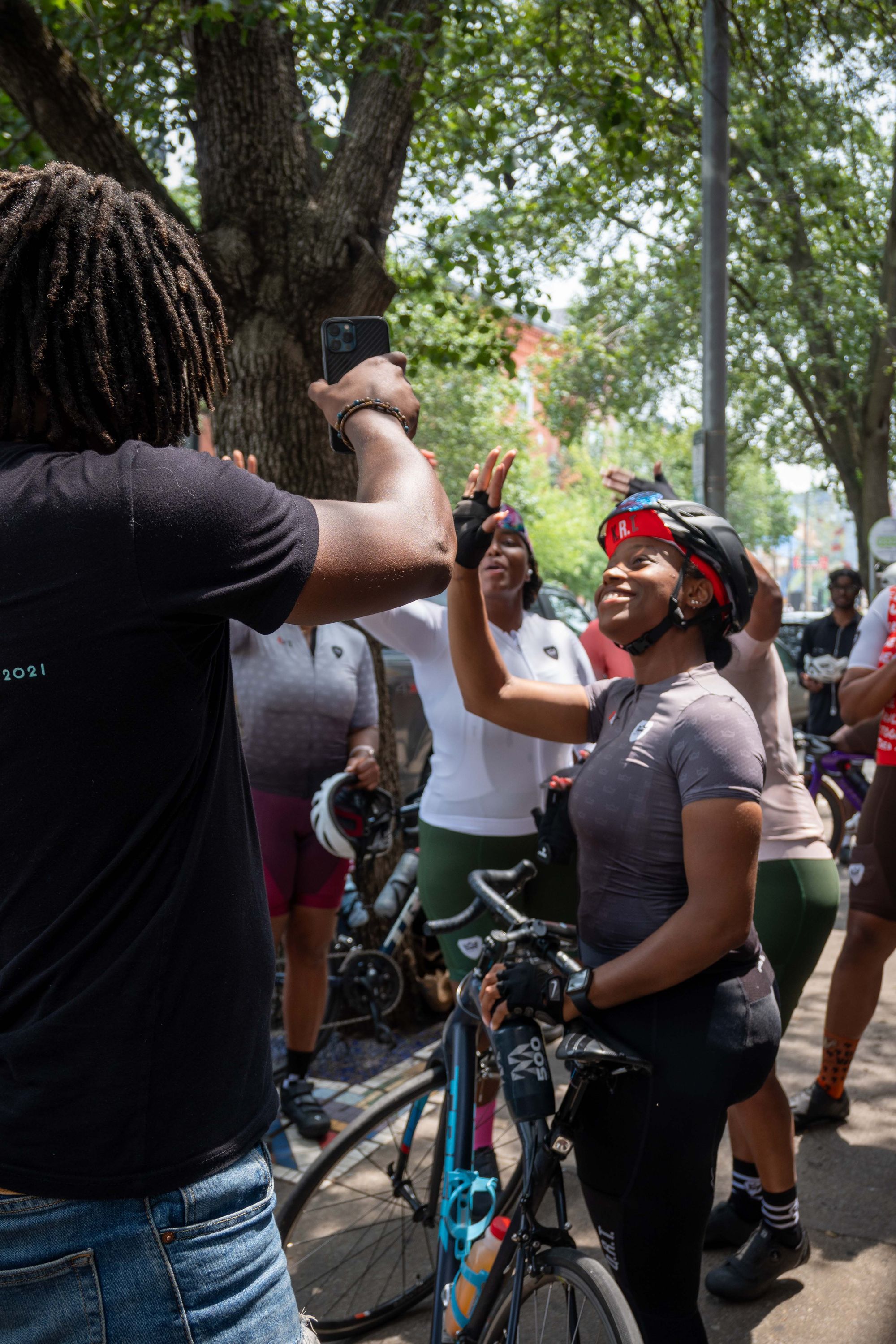 In response to Siddeeq's injury, The Tricycle & Velojawn organized a ride to show him that he has the love and support of his community. After coffee, treats, and interviews with NBC 10 news reporters, several dozen riders departed The Tricycle shop in Conshohocken on the first leg of the ride, following the SRT into the city to Velojawn. More riders, snacks, and Fox 29 news reporters awaited at Velojawn, where the mood was jubilant and Siddeeq enthusiastically made the rounds over FaceTime.