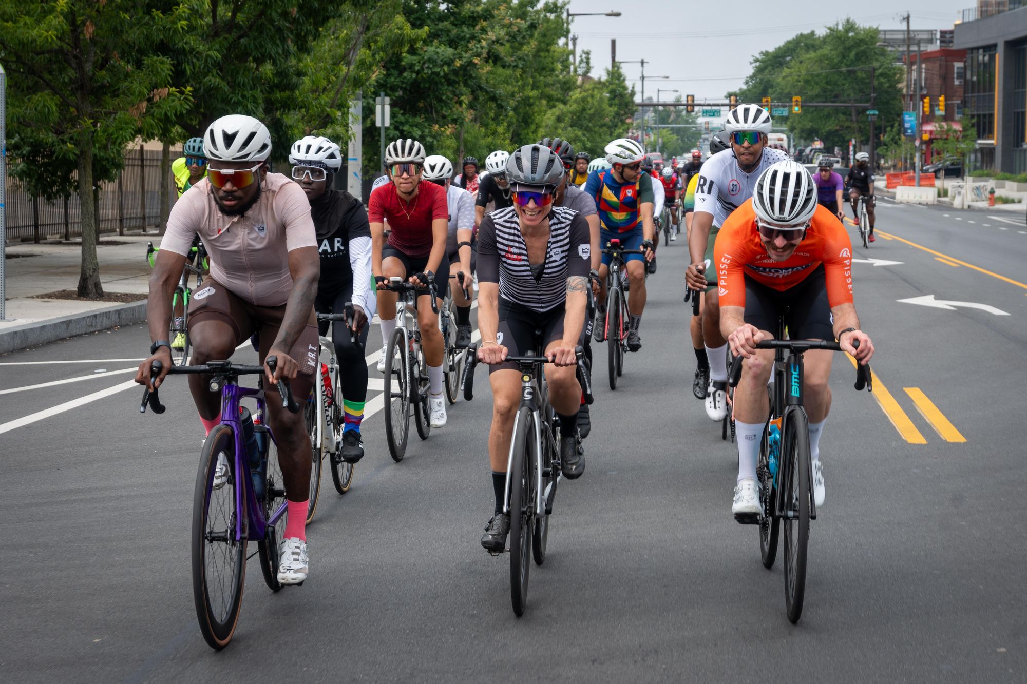 Within a year of starting riding during the pandemic, Siddeeq Shabazz had become a powerhouse in Philadelphia's cycling scene, leading weekly club rides, featuring nationally on the cover of Bicycling Magazine, and inspiring an ever-diversifying body of riders with his radiating positive energy. One of 12 siblings, Siddeeq loves visiting happy hours at steak houses and fine dining restaurants and his favorite food is fried shrimp. When I asked Siddeeq for his favorite joke, he replied "the man who sleeps on the floor never falls out of the bed." Lol