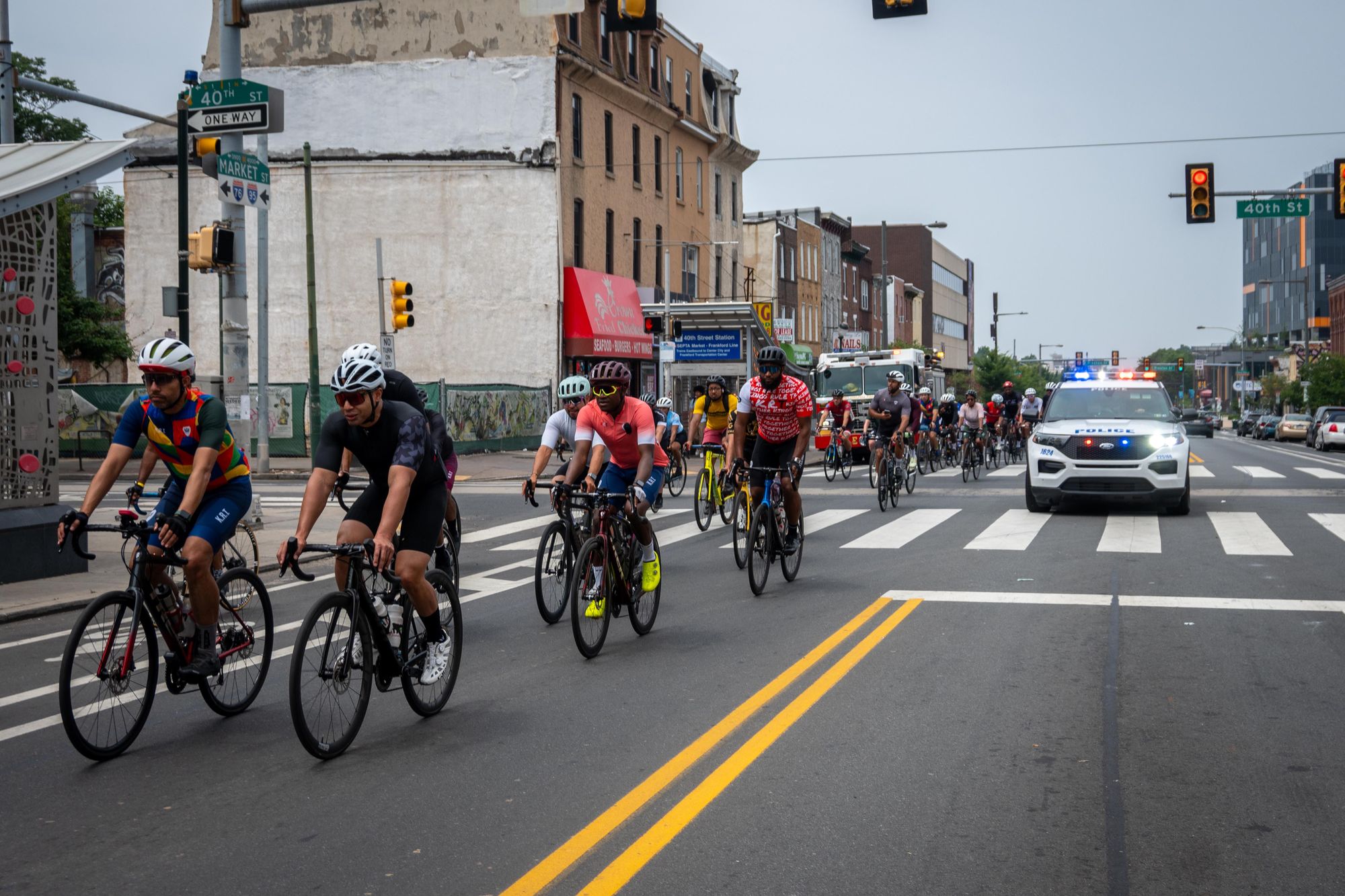 At noon, police sirens filled the air, indicating it was time to embark on a police-escorted six mile loop of the city. Parading down Market Street from 50th to 20th Streets, the ride rolled past Penn Presbyterian Medical Center, where Siddeeq has been spending time recovering.