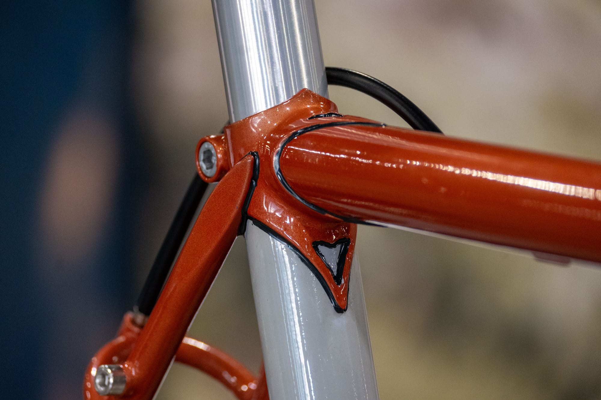 Simona's bike features the industry's most beautiful and innovative new products, but she was also intent on giving new life to old parts that were already around. She rooted the depths of the Bilenky shop's deposits to revive tubes and components like the seat and chain stays, fork crown, and headset. She mined the lugs that would hold her frame's tubes together and refined their shapes, adding a personal touch. Casey Sussman from Mars Cycles gifted the dropouts. Even the copper colored paint was recycled from a project that long ago shifted in a different direction. This bike is extraordinary for its graceful fusion of the new and the old. Simple. Elegant. Efficient.