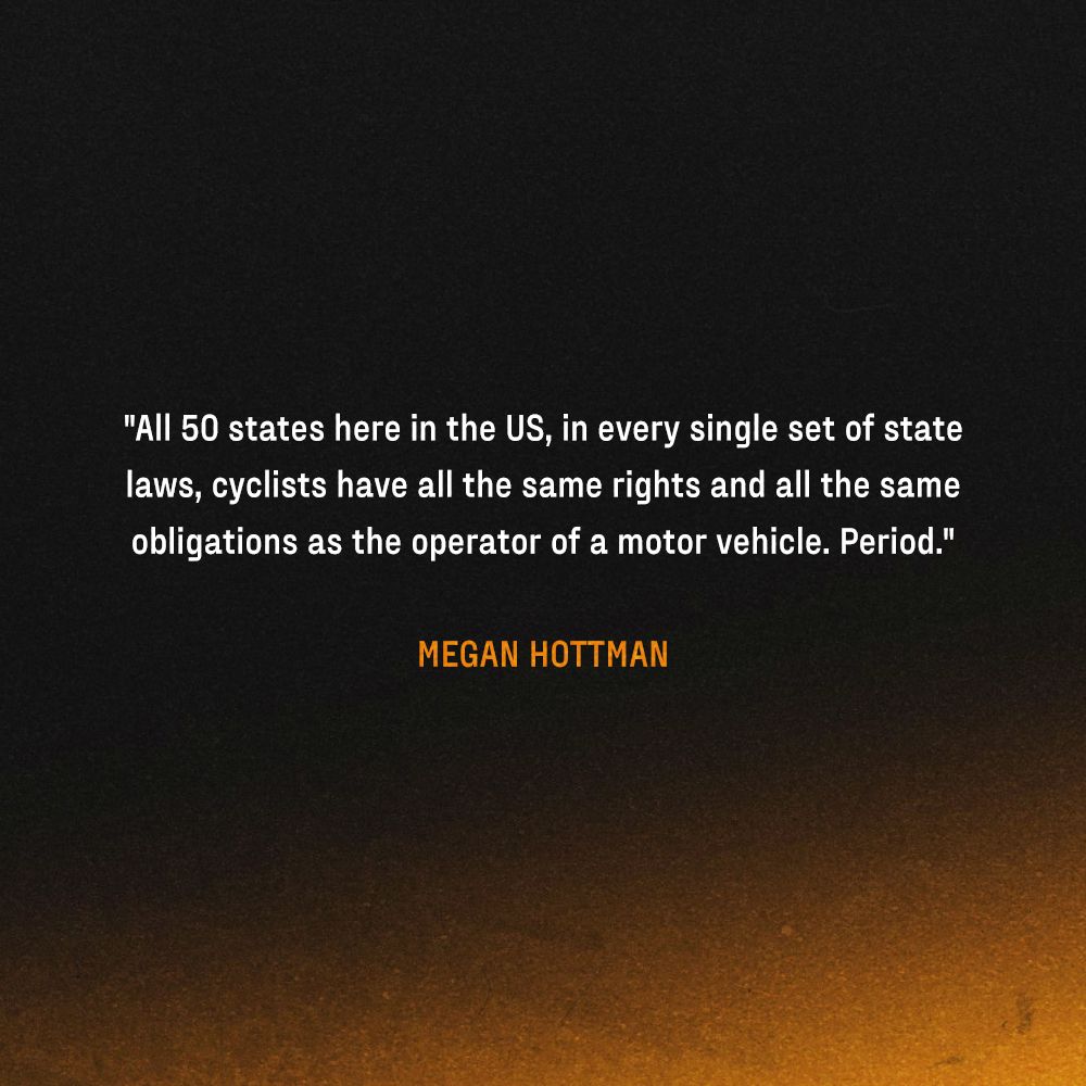 Megan Hottman, of Golden, CO, is a former elite racing cyclist with an intimate understanding of the risks inherent with a cycling lifestyle. Her law practice seeks to protect other cyclists from the consequences of inadequate engineering in a world shaped by the domination of private automobiles.