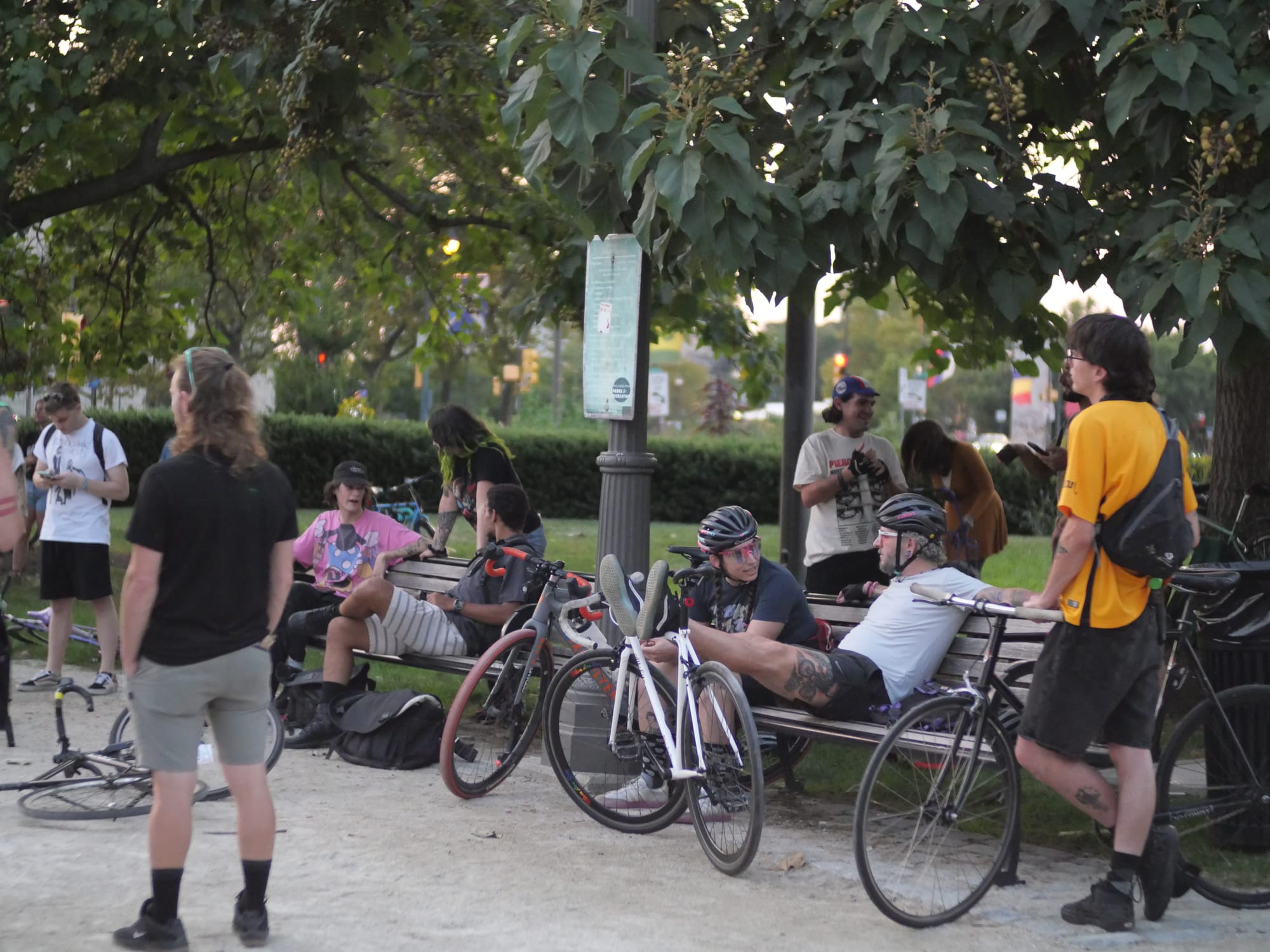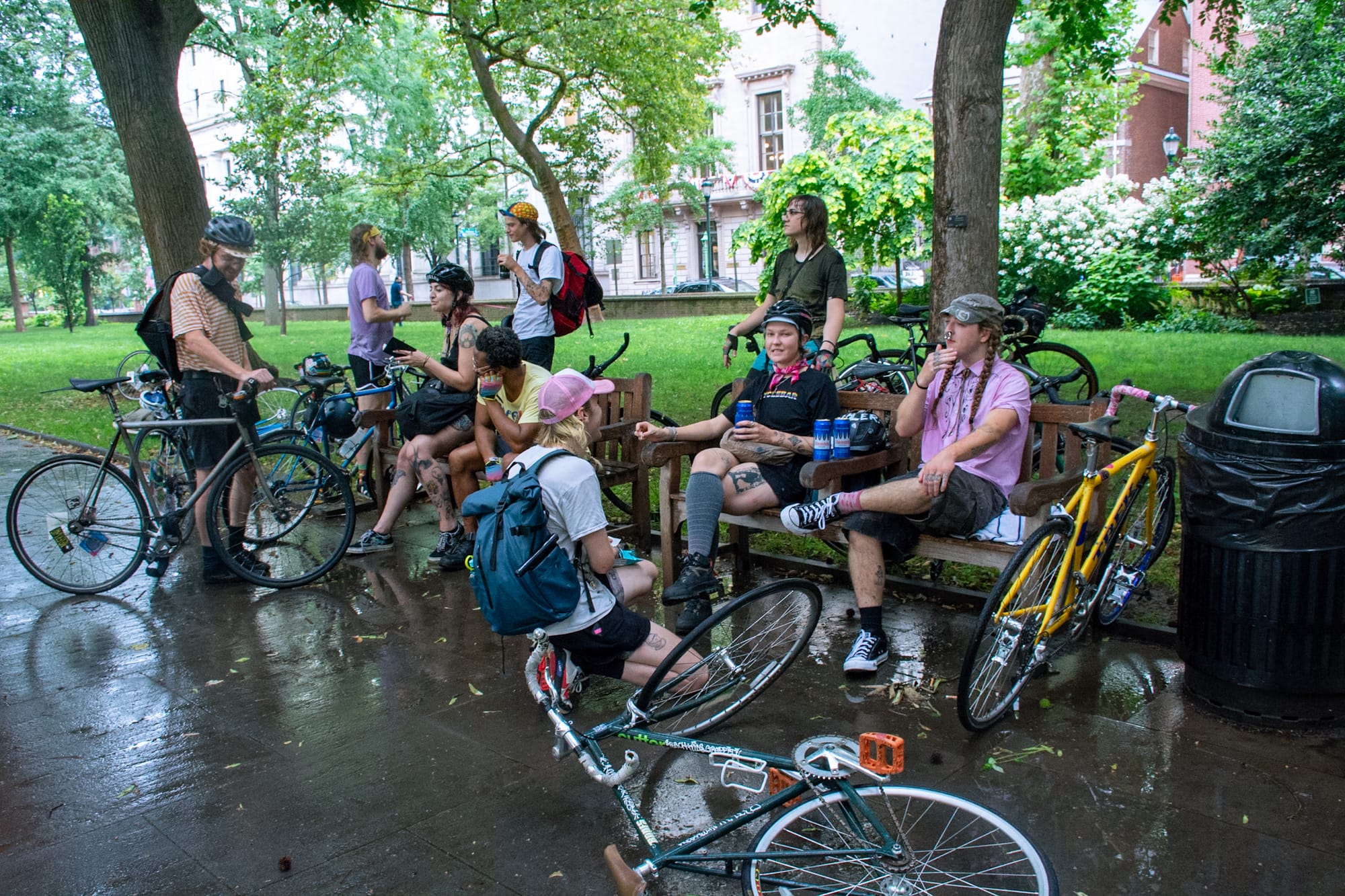 1) TITLE: Casual Community DESCRIPTION: Members of the Philly bike community gather in Washington Square Park for the start of an Alleycat at the end of June. | Ollie Reinert. 2) Loaners | Noelle Dames.