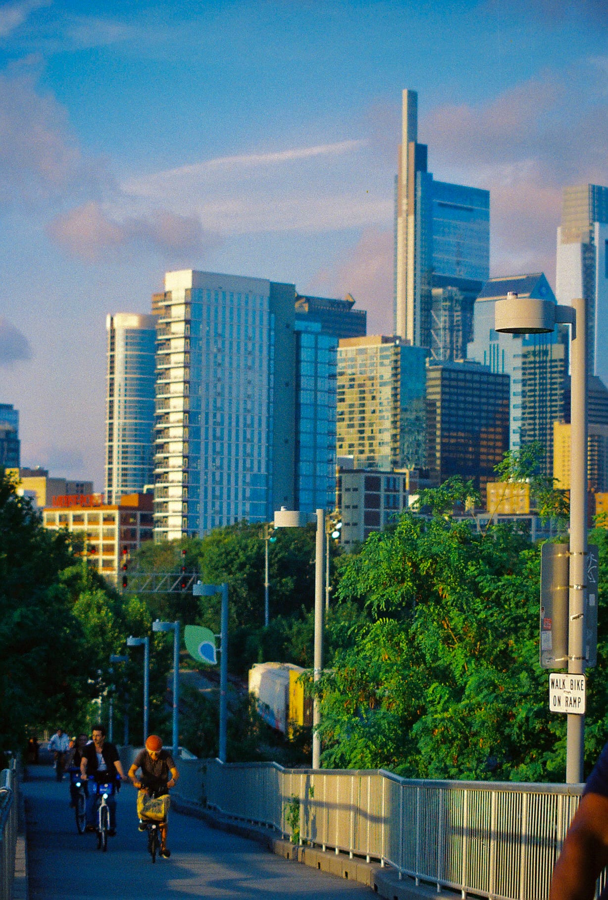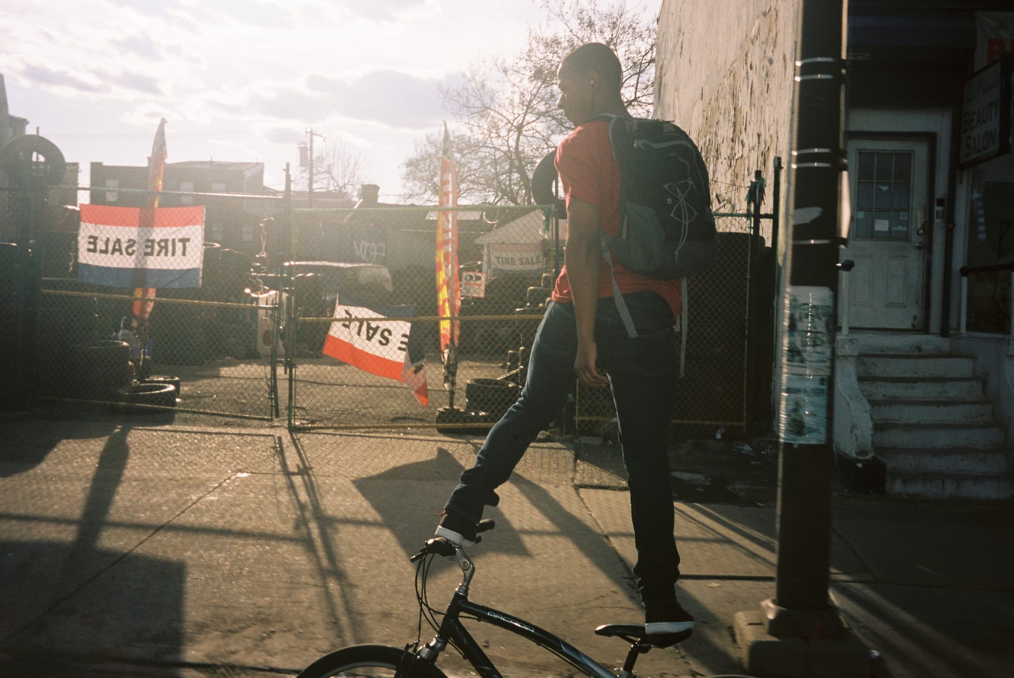 1) Coming up on the Drexler Recreation Center with some good friends on Market Street. | Peter Arquette. 2) On a bike | Natallia Chakhau.