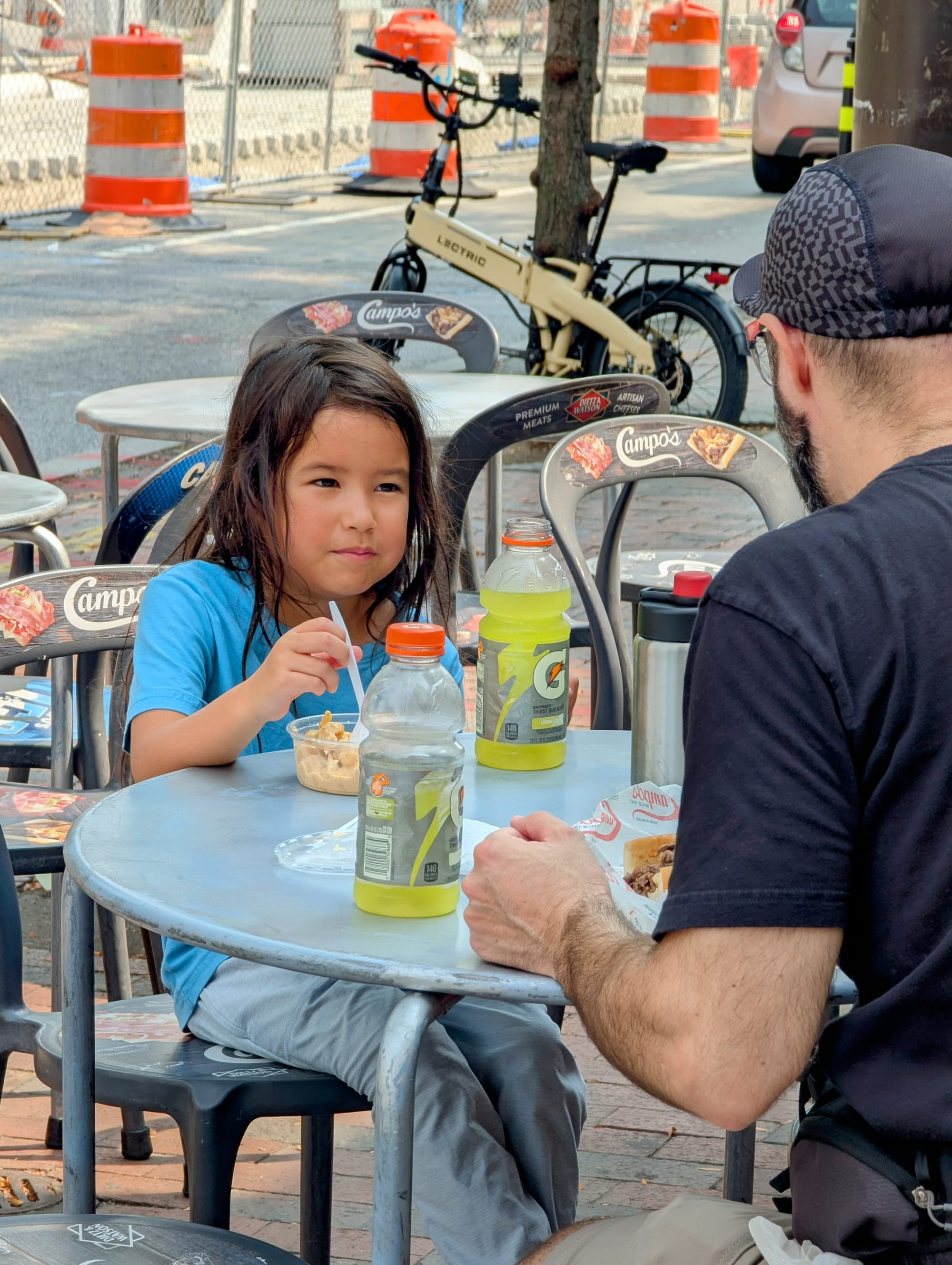 1) PBA activists enjoy Campo’s after East Market Business Support Ride during bike lane construction. This ride (my concept) demonstrated bike lanes =$$$ | Michael Novak. 2) Biking through the eagles win | Michael Garrity.