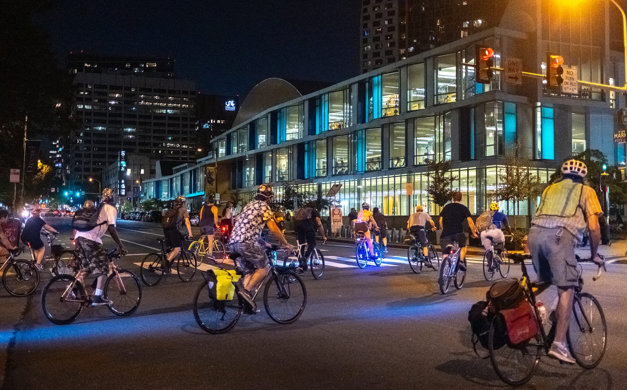 1) A quiet kind of fast on MLK Drive | Denis Lattanzi. 2) Philly Bike Train! | Daniel Paschall.