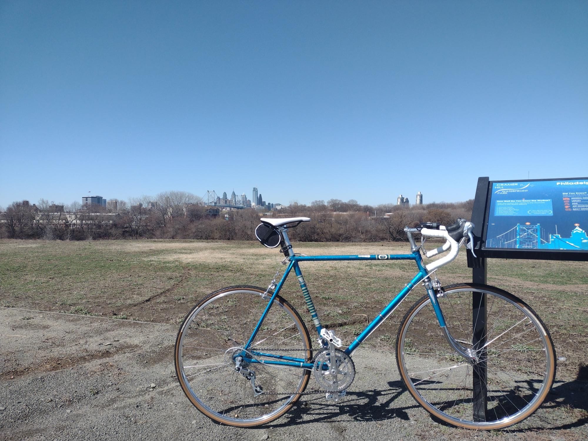 1) Shot of Philadelphia from C in Camden, NJ. In the photo is a refurbished Sears 10-speed my dad rode in the city in the 70s. Peter McLoone. 2) Photo of Philly skyline from the overlook at 61st St on the SRT. Peter McLoone.